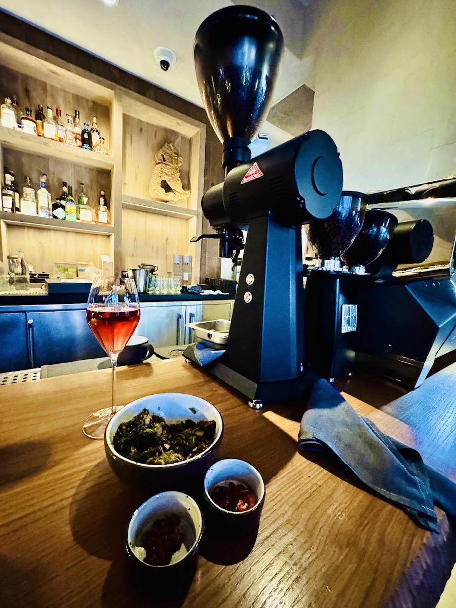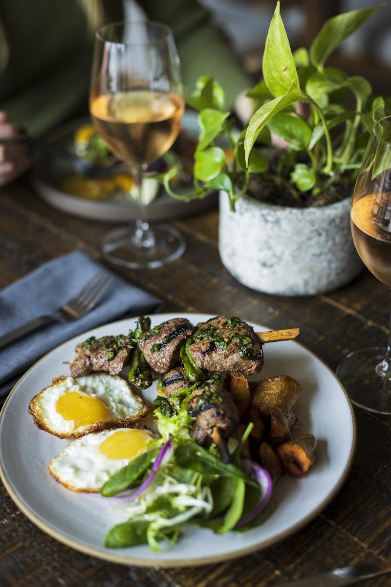Came here for a double date and it was so pretty inside! Good: - The plates all come pretty quickly - babaganoush with the pita came out super quickly and generous portion of pita - The lamb pita was delicious - small but the meat was very juicy - The ice cream dessert was huge - and great for sharing! Super refreshing too - The veggies were all scrumptious - the elote stuck out the most with the corn and super tasty sauce. Bad: - Pretty expensive for pretty small plates, portions are very small - Hard to flag down the waiters - Brussel sprouts were just average, the shakshuka was a bit too lightly flavored for me Overall this was a nice upscale date experience!